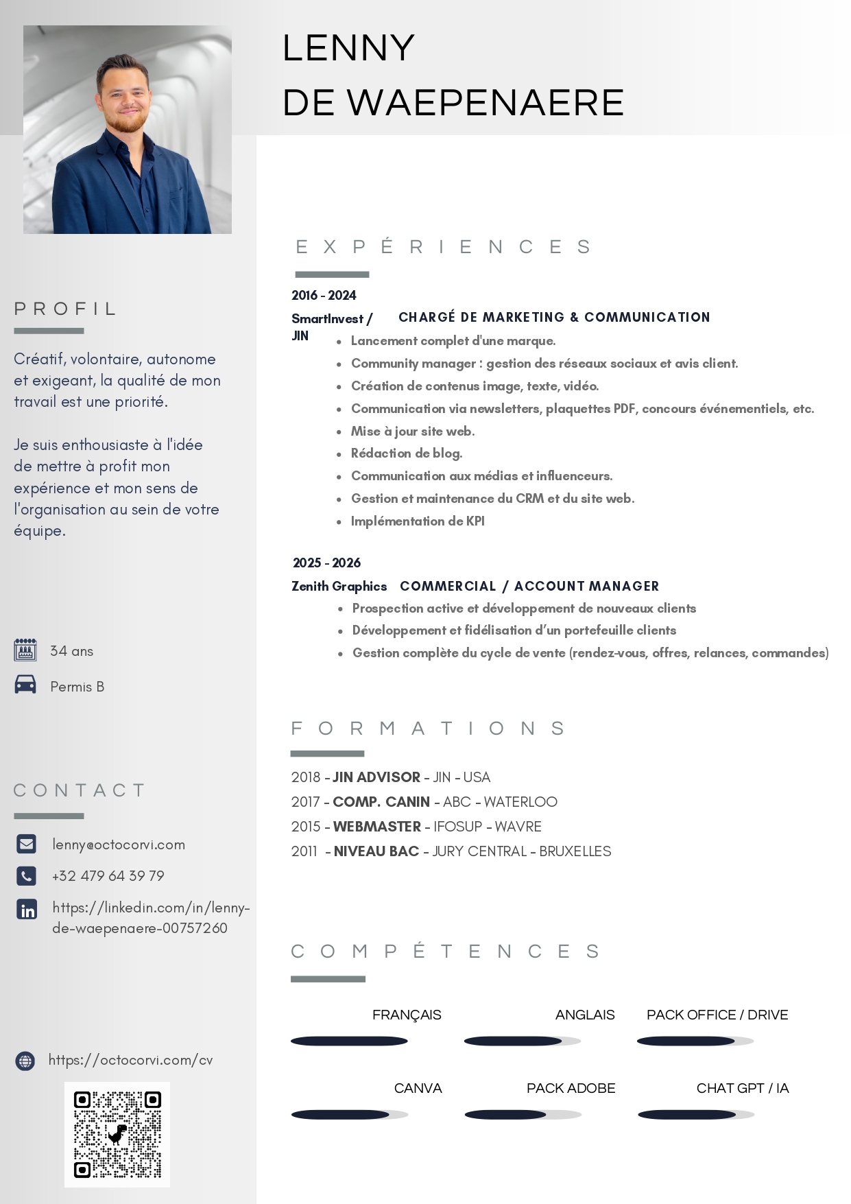 Vous y trouverez une version vidéo et PDF de mon curriculum vitae.